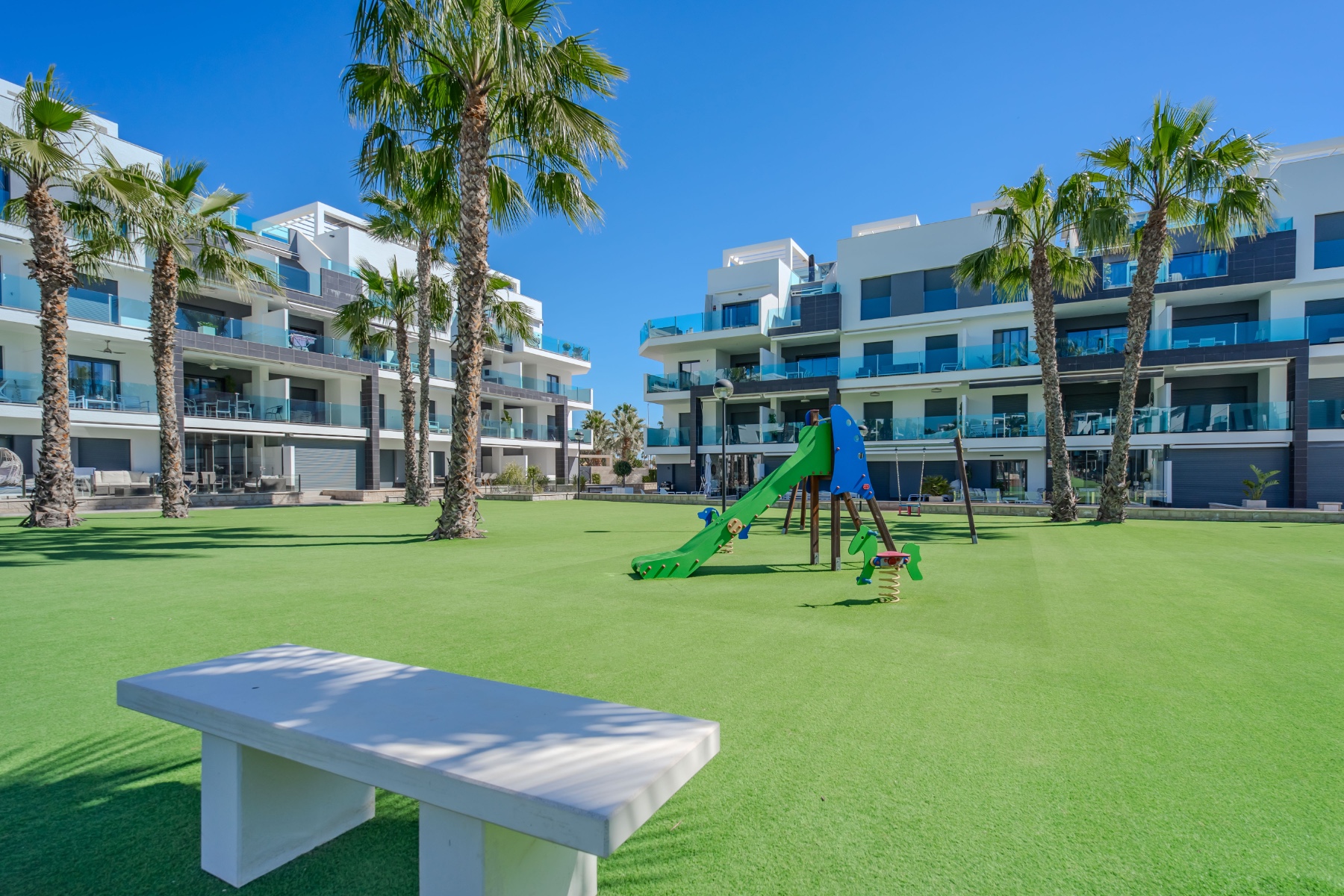 Two communal swimming poolsSpa and wellness areaPutting greenChildren’s playgroundLandscaped communal gardens