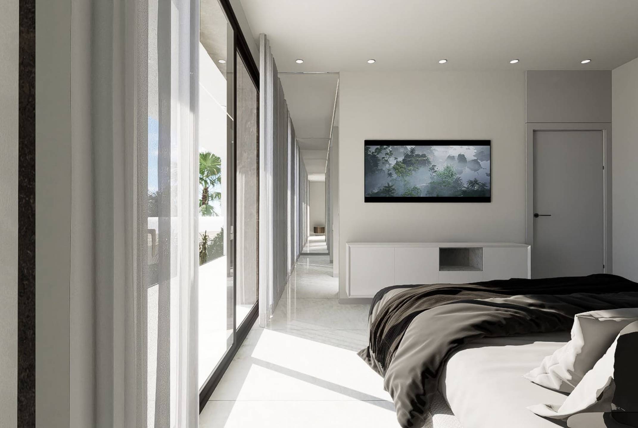 The villa is arranged over three levels with a well-balanced layout. It offers four bedrooms, four bathrooms, a guest WC and a separate utility room. The main living areas are open and filled with natural light, with large windows creating a seamless connection between indoor and outdoor spaces. The living room and kitchen open directly onto the terrace and pool area, making the home equally suited for everyday living and entertaining.