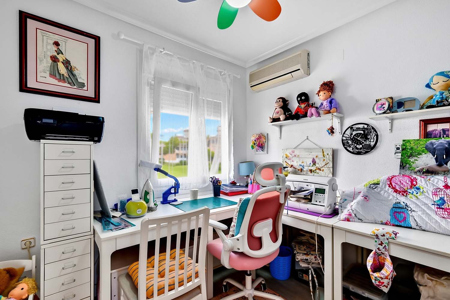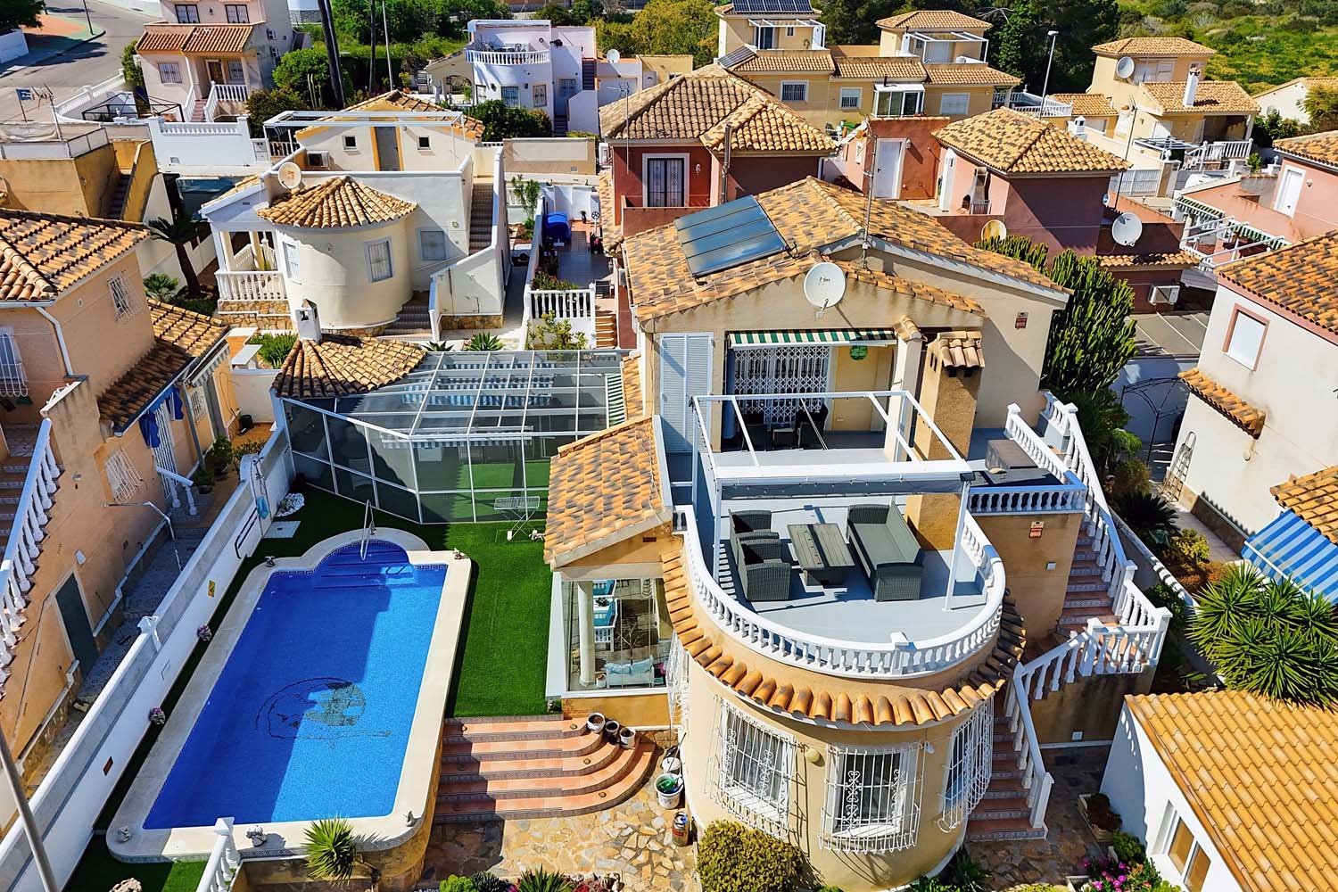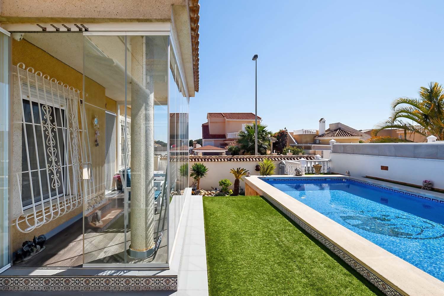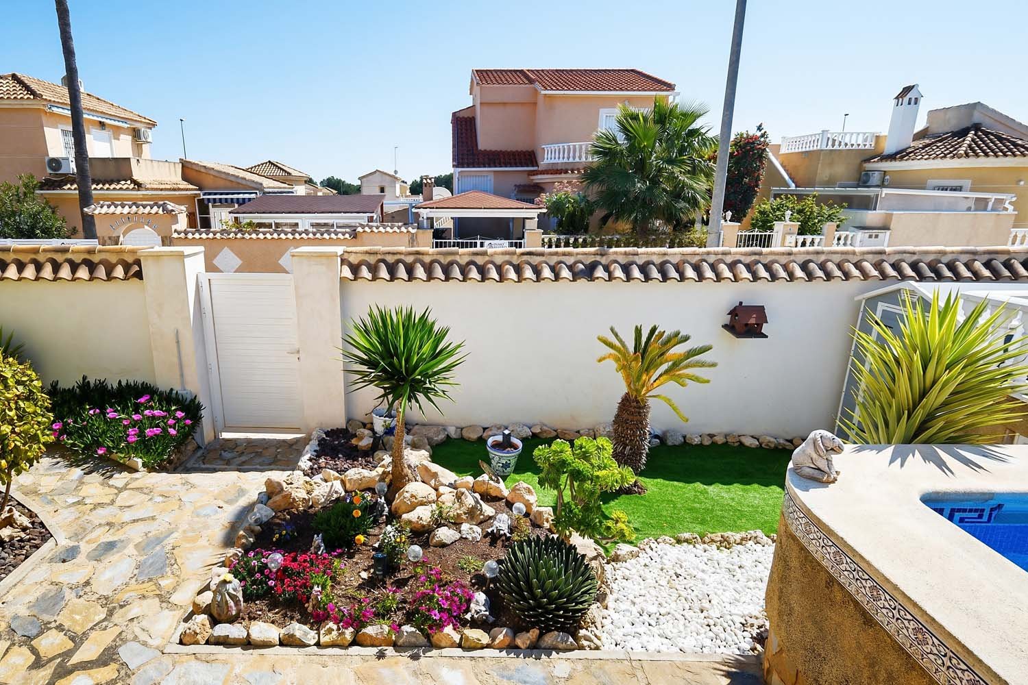 Beautifully presented and spacious three bedroom, two bathroom detached villa with private swimming pool in the sought after village of Pinar de Campoverde, this fabulous villa is located on a quiet one way street on the edge of the Rio Seco Natural Park and is only 10km from the popular blue flag beaches of Torre de la Horadada and Mil Palmeras.