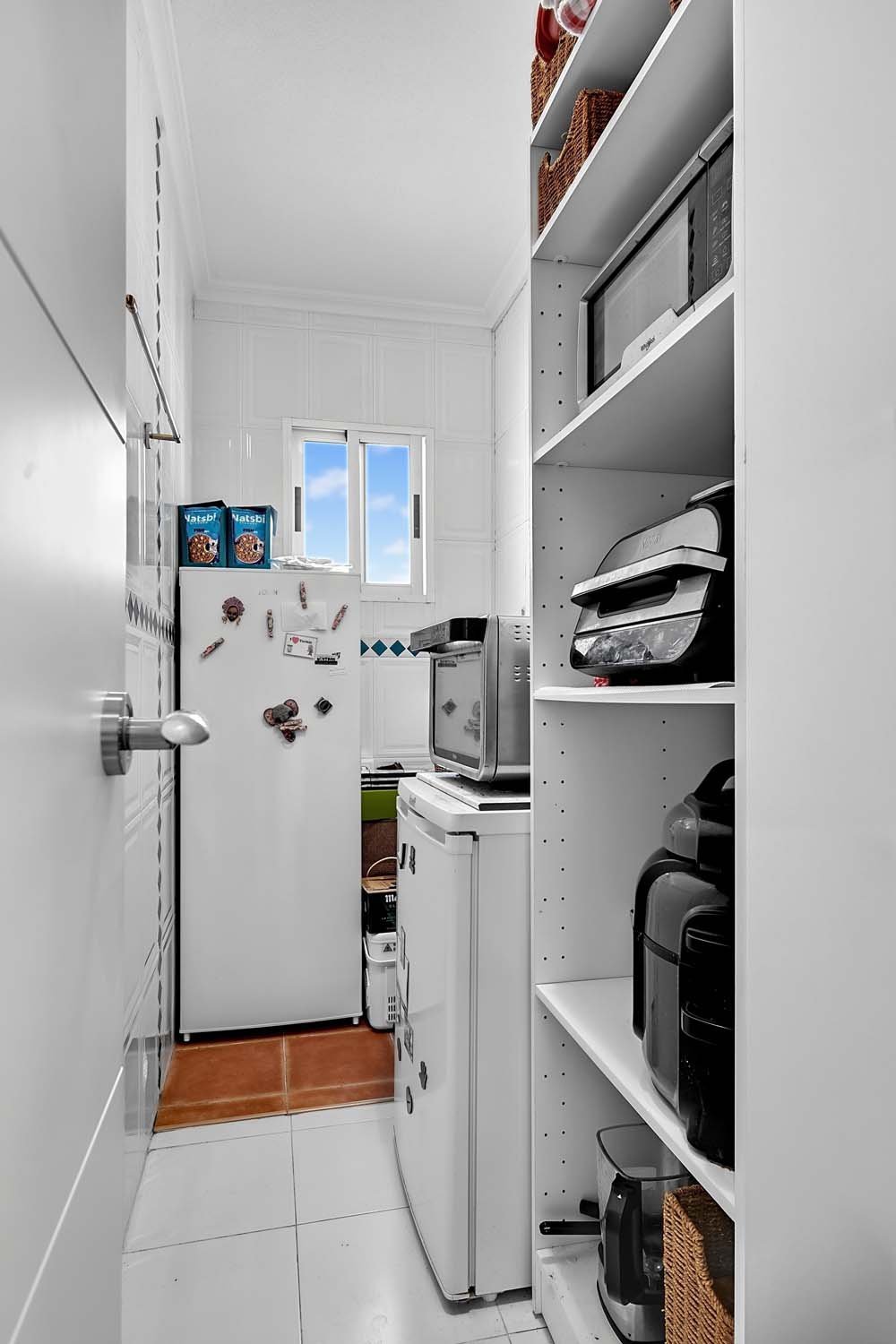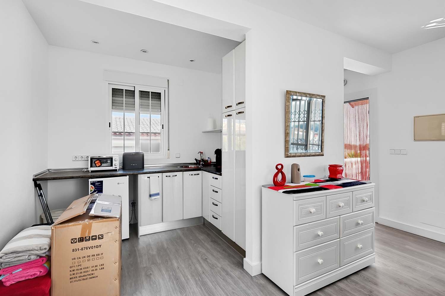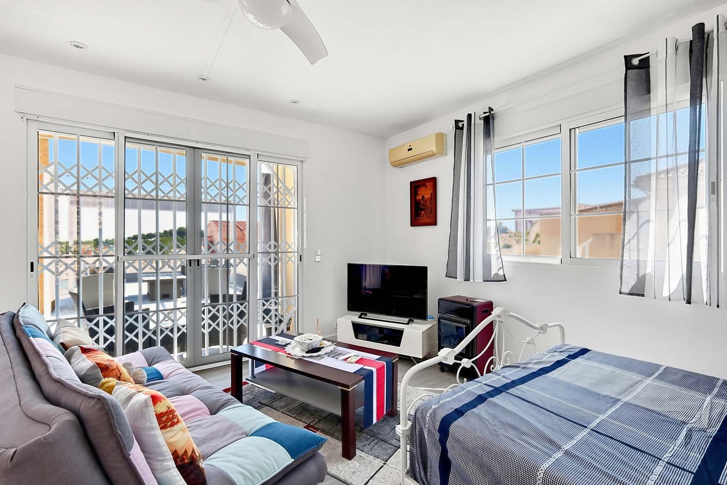 The ground floor features a spacious, bright open-plan living and dining room, creating a welcoming space for everyday living and entertaining.The kitchen is to the rear of the living area it has been refurbished with modern units and has a door leading straight out to the garden, A hallway from the living area leads to the rest of the ground floor accommodation, first is a separate utility room (this was orginially a second ground floor bathroom and can be easily changed back if prefered) a double bedroom, fully refurbished bathroom with walk in shower and the large master bedroom with door leading out to the pool area. At the front of the villa is a charming sun room with glass curtains which overlooks the swimming pool, providing an ideal space to relax throughout the year.