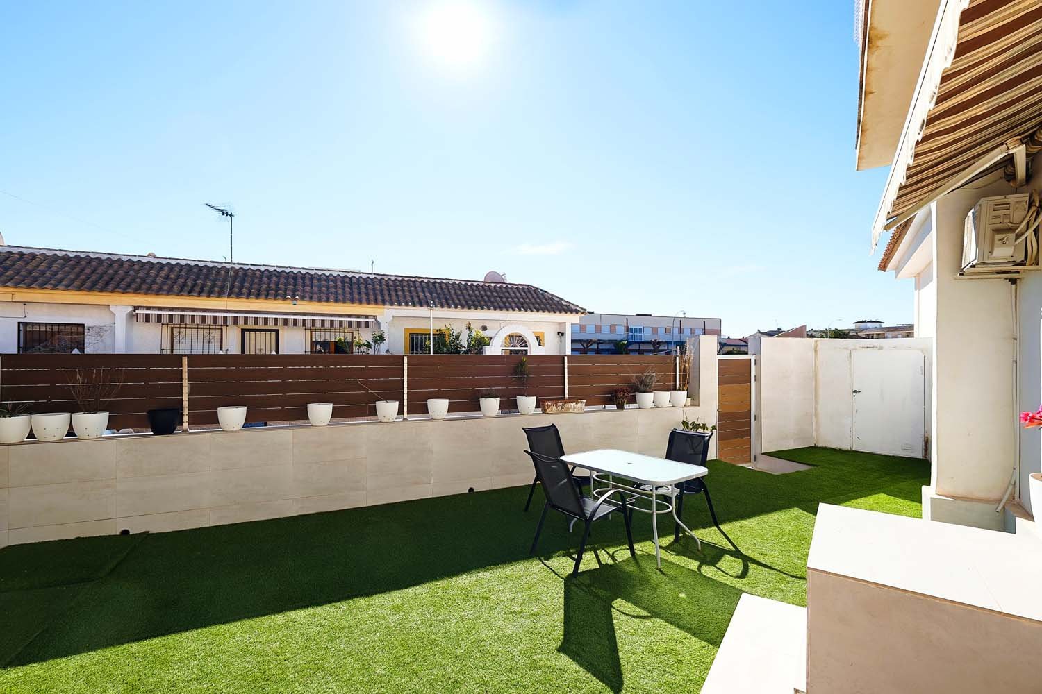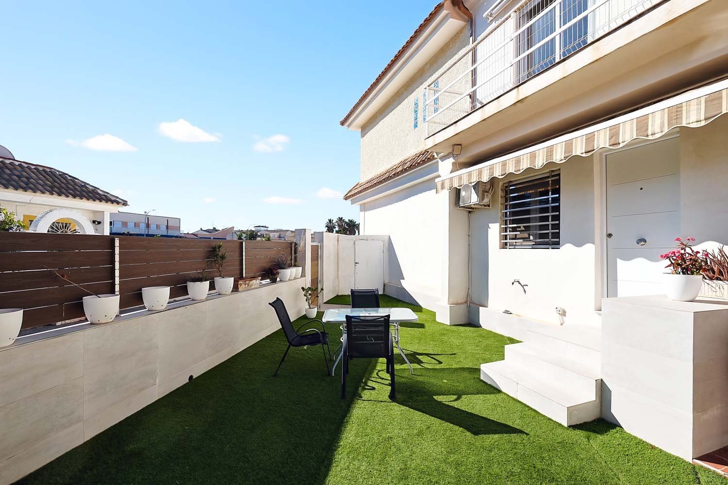 Renovated house in Los Narejos, offering the possibility of permanent residence thanks to its amenities, comfort, and natural light, or enjoying it as a second home, as it is located just 1.5 km from the beautiful beaches of the Mar Menor. It is a duplex with four bedrooms, two bathrooms, and a 35-square-meter garden.You enter through the main entrance to the garden, both of which have been completely renovated, giving it a modern and contemporary style with artificial grass where you can enjoy a barbecue with friends and family year-round, and even a future swimming pool. The garden has an awning and a convenient storage room for belongings such as bicycles, beach gear, etc.Upon entering the property, you’ll find a bright living-dining-room with space for a table and sofas, which connects to a fully renovated and equipped kitchen with all appliances. A skylight in the roof provides natural light and ventilation and opens easily. On this floor, there is a room currently used as a bedroom, which could be used for multiple purposes, such as a storage room, dressing room, or playroom.The upper floor is accessed via a spiral staircase that leads to an open-plan space currently furnished with a desk or study area bathed in natural light. Perhaps this could be complemented with a library or reading nook. The hallway leads to three bedrooms and a full bathroom. The bedrooms have beautiful French doors with terraces, providing cross-ventilation and natural light throughout the floor.The property includes air-conditioning and furnishings, which, with a few exceptions, are all included in the price. There are no community fees. Parking is available year-round on the private street.Its location offers excellent access to the highways to Cartagena and Alicante and is next to a school. The area is peaceful year-round, as it’s a residential neighborhood with many second homes. Just a few minutes’ walk away you’ll find restaurants, bars, shops, and more.Los Narejos is a coastal area perfect for enjoying the sun all year round, with long walks along its seafront, terraces, and unique, traditional piers—the only ones of their kind in the Mar Menor area—as well as its water sports.Book your visit today! Come and discover this beautiful property and its amazing surroundings, unique to the Murcian coast.