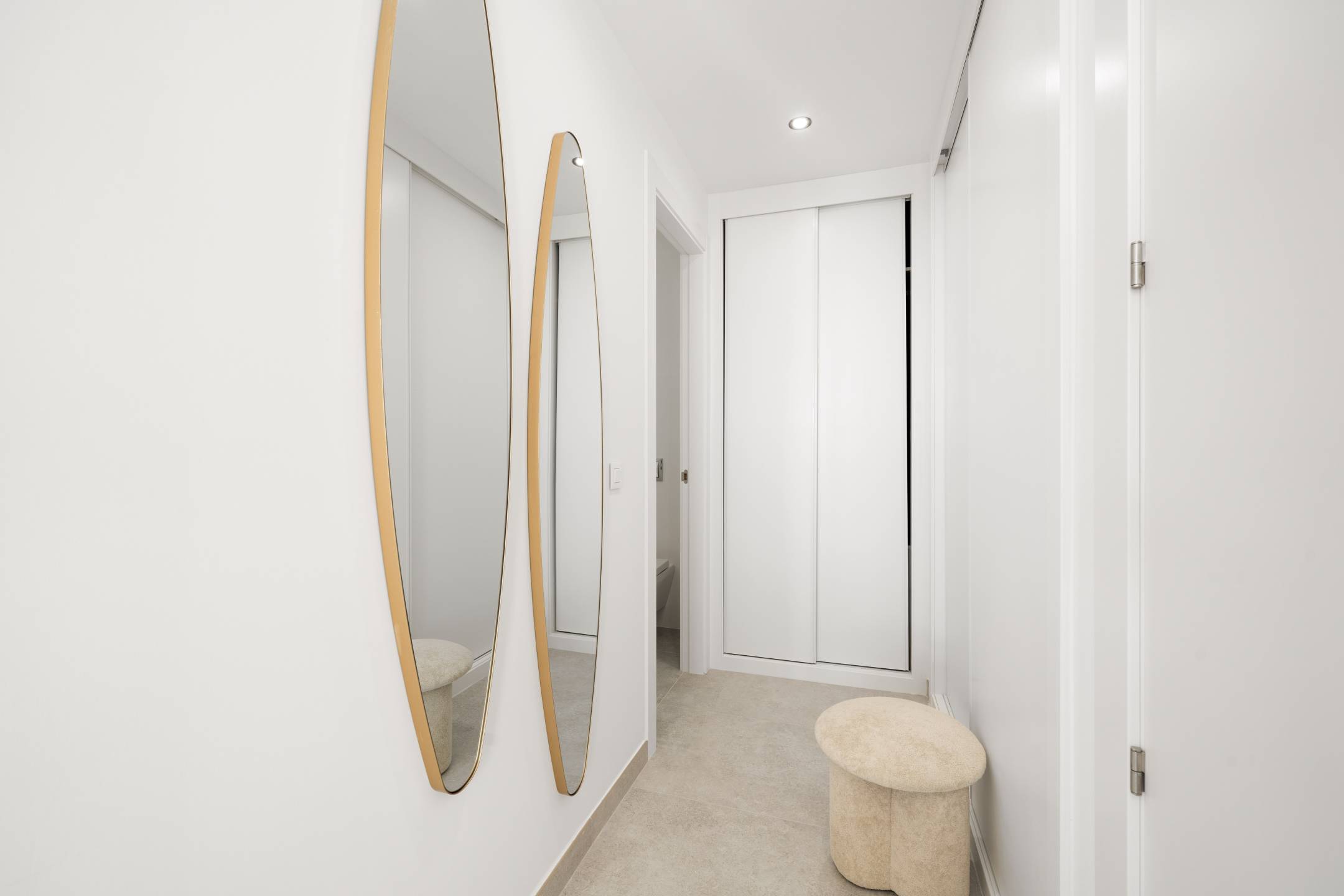 The architecture boasts a clear expression, with a modern design that stands out without being overdone. The façade combines light tones with warmer details, and the prominent terraces give the building a strong and distinctive character. The communal areas are spacious and well-planned, featuring a pool, paddle court, gym, and playgrounds. This residence is ideal for both permanent living and holiday stays.