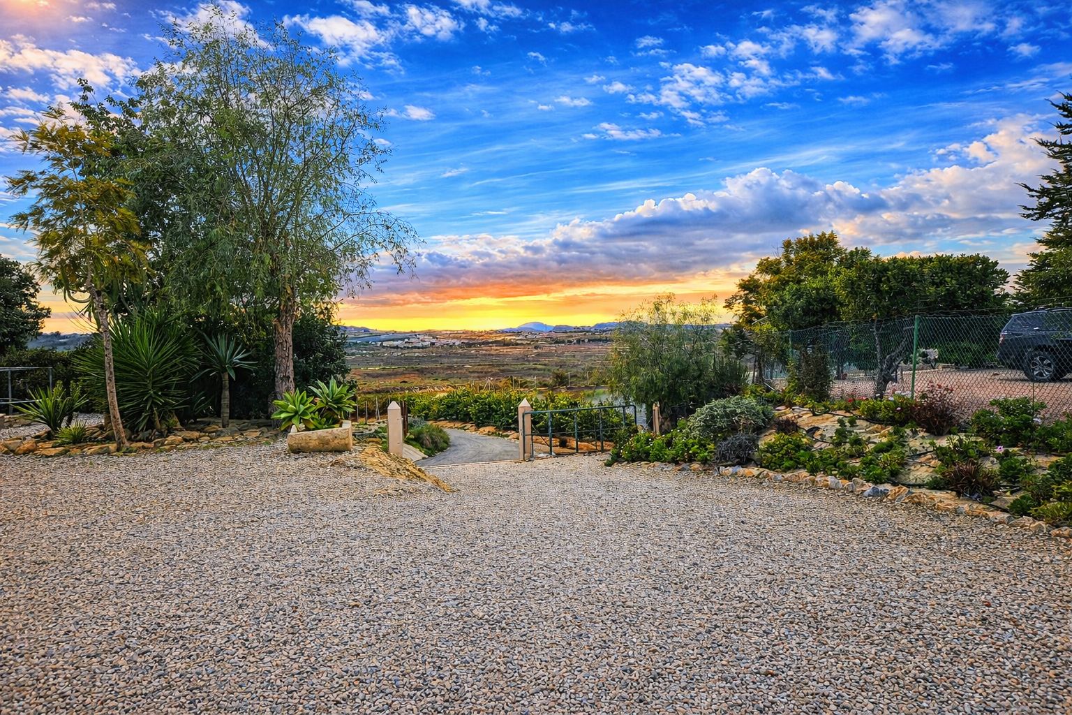 Once in a lifetime opportunity to purchase an incredible villa on a huge 11,000m2 plot with breath-taking views over Embalase de la Pedrera reservoir in Torremendo. This huge elevated plot is easily accessed from the main road with a private road leading up towards the main villa and fully landscaped garden with private swimming pool, double garage, the horse stables and vast paddock area. The villa has been built to very high specification with many special features and extras including solar panels, heated swimming pool with electric roof, double garage and separate storage room, oil central heating, air-conditioning, log burner, hidden utility room, plus a lot more. The villa has a very thoughtful layout that flows with high ceilings and floor to ceiling windows that make the absolute most of the spectacular views across the lake, lemon groves and reservoir. On the ground floor of the property there are three double bedrooms, a family bathroom with shower and bathtub, the fantastic L-shaped living and dining room which leads into the fully equipped bespoke kitchen. To the rear of the kitchen is a covered terrace and storage area which wraps around to the swimming pool. This area has direct views across Torremendo and the reservoir and no expense has been sparred with the installation of the heated pool and electric roof to make this space useable all year round. The impressive master bedroom is accessed from a private staircase in the living room where you will find the bespoke en-suite bathroom with walk in shower, bathroom and luxurious vanity unit. The master bedroom also has a walk in dressing room along with a private terrace overlooking the vast plot towards the Embalse de la Pedrera reservoir, Vega Baja mountain range and the pretty lemon groves.