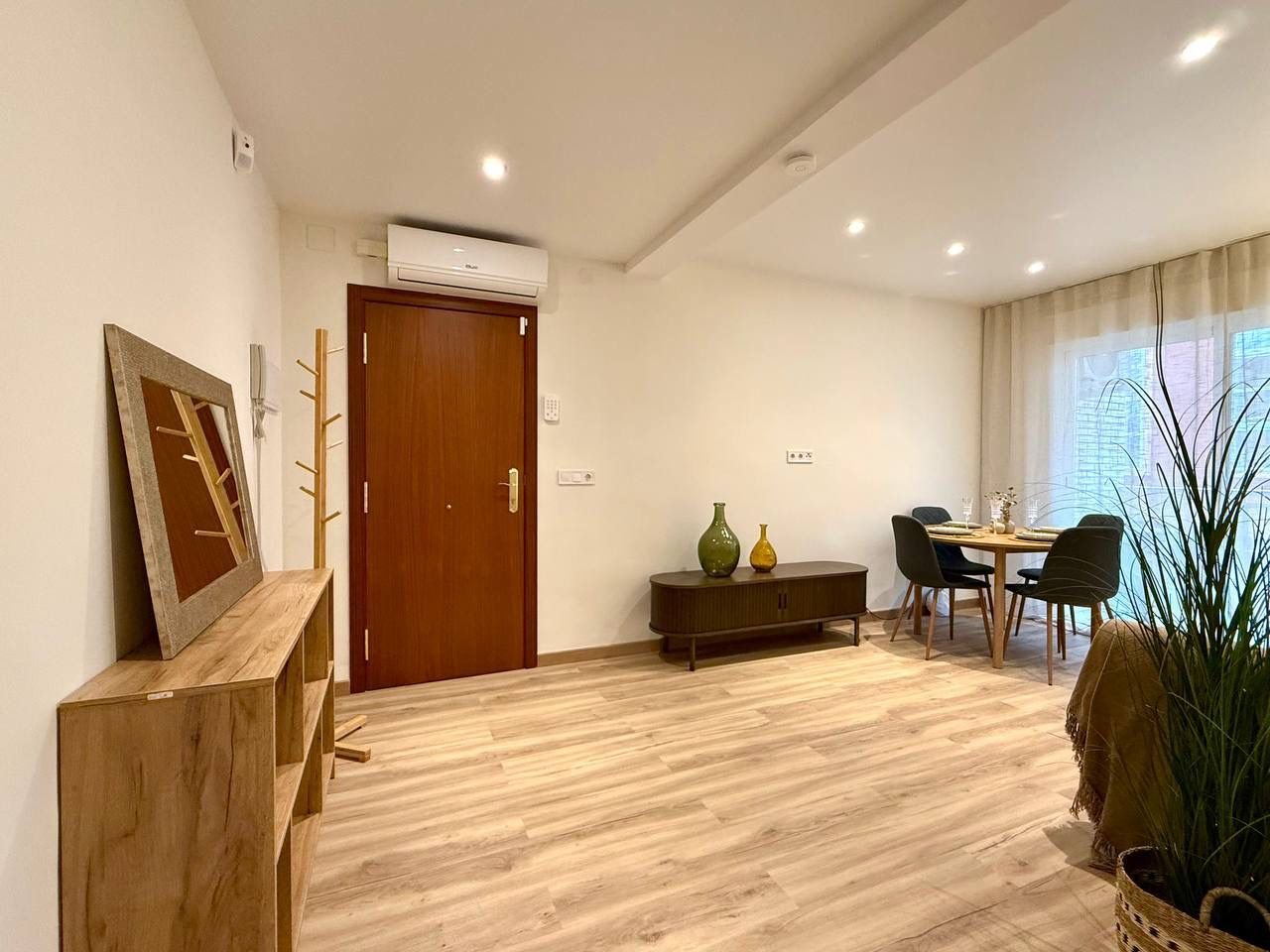 Welcome to this beautiful apartment nestled in the beautiful natural surroundings of Molino de Quintín in Lo Pagán, San Pedro del Pinatar. it located just 50 m Villananitos Beach. It features two bedrooms, one bathroom, and has been completely renovated and professionally designed.Located on the first-floor of the building, it is accessed via a shared staircase. Upon entering the living-dining-room, you’ll find yourself admiring the beautiful, comprehensive renovation, decorated with designer furniture. The separate kitchen is fully equipped with all the necessary appliances, ready for immediate occupancy and ideal for enjoying a leisurely breakfast. A convenient utility-room with a washing machine and electric water heater provides practical storage or pantry space. The two bedrooms are fully fitted with wardrobes, and the bathroom boasts a spacious vanity and a shower with underfloor heating. The electrical wiring, plumbing, and ceiling lighting have all been completely updated, including LED lighting. Air conditioning is also included.The apartment’s exterior features a south-facing terrace, flooding the property with natural light and sunshine, perfect for sunbathing or entertaining friends. It offers views of the side of the Hotel Lodomar.This area of San Pedro del Pinatar, next to the salt flats of the Mar Menor, makes its walks, strolls along its piers, and mud baths in this beautiful natural environment highly recommended for health and well-being. The beaches of the Mar Menor are renowned for their calm waters and are ideal for water sports.Book your visit with us now!